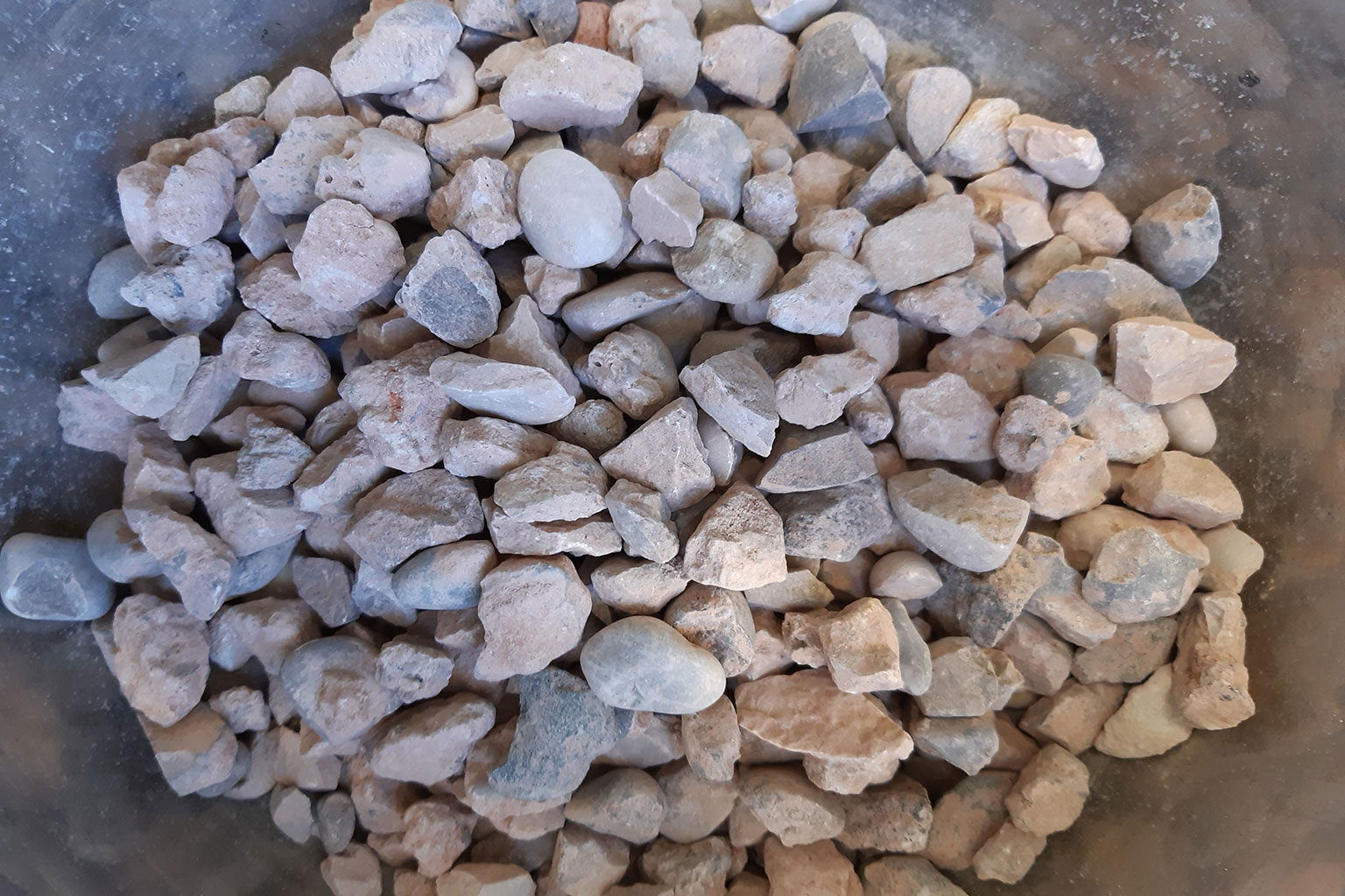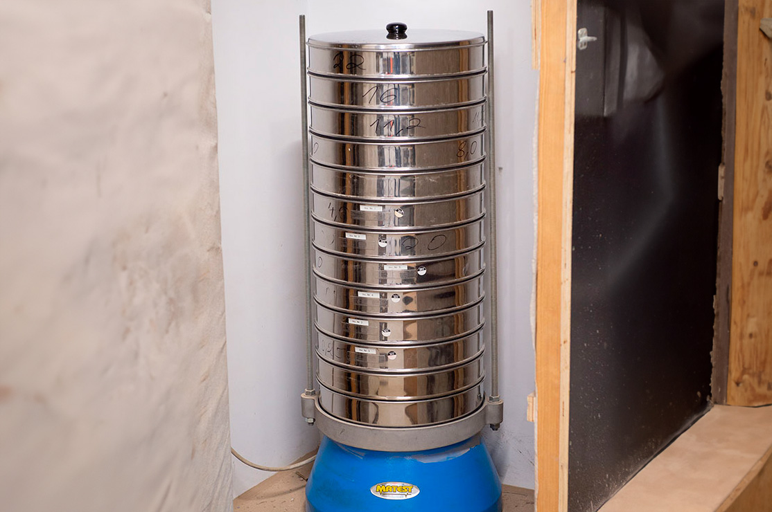 Das gebrochene Material wird klassiert (gesiebt) und noch vorhandene störende Teile werden maschinell